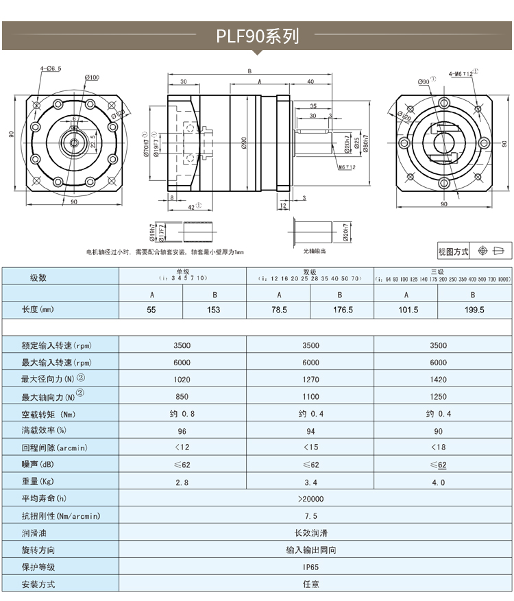 行星減速機(jī)特點(diǎn):產(chǎn)品全面升級(jí),采用前后油封,齒輪配件日本進(jìn)口,國(guó)際知名品牌NSK軸承,具有高精度、高鋼性、高負(fù)載、高效率、高速比、高壽命、低慣性、低振動(dòng)、低噪音、低溫升、外觀美、結(jié)構(gòu)輕小、安裝方便、精確定位等特點(diǎn),適用于交流伺服馬達(dá)、直流伺服馬達(dá)、步進(jìn)馬達(dá)、液壓馬達(dá)的增速與減速傳動(dòng)。能與任何電機(jī)匹配安裝(如松下,安川,三菱,西門子,富士,臺(tái)達(dá),東元,臺(tái)安,匯川,信捷,埃斯頓......)電機(jī)不同,與之匹配的尺寸將有所變化,適配器將不同,配特殊電機(jī)可以訂做??!